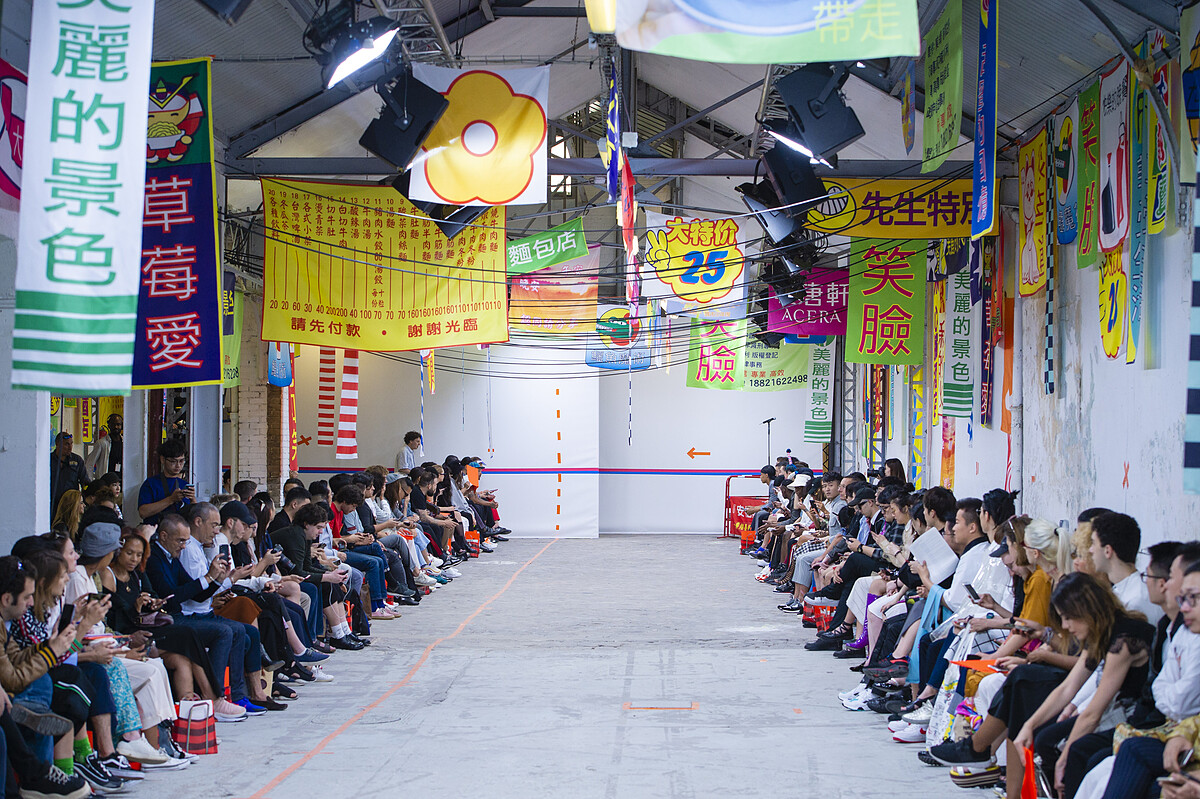 在秀場上,台灣新銳靈魂樂女伶 9m88 也到場獻唱、台灣新世代藝術家 John Yuyi 擔任客座視覺造型師。禮品袋裡面的王德傳茶葉、旺萊山土鳳梨酥、乾唐軒隨身瓷杯…全都裝入台灣傳統的茄芷袋,濃濃的台灣味實在好親切。得以窺見復古而新潮的交融,幽默且設想周全的巧思,Angus 的設計打破侷限,將大眾認為俗麗土氣的台灣文化,用新鮮而幽默的角度詮釋。