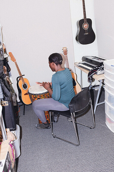 我們在 My Friend’s Place 機構認識 Nikki,她跟我們描述她是多幸運才能擁有現在的住所、之前住的避難所與更早之前流浪街頭的經歷,以及她害怕自己有一天會變成在 My Friend’s Place 認識的那位女孩一樣:「有好幾週時間,她被毒癮纏身,變得瘋癲和迷失自我。」如今 Nikki 在好萊塢一間高級超市裡擔任收銀員,一週五天,已經持續了三年時光,「每當看著那些在跑步機運動的人,東西買來吃兩口就丟到垃圾桶,真的讓人作噁。」目前她住在修道院裡,一邊完成傳播課程學業、一邊追逐明星夢。在 My Friend’s Place 裡,Nikki 發展出對音樂的興趣,My Friend’s Place 有一間能直接面對 白色「Hollywood」地標的音樂房,讓 Nikki 可以在這裡精進音樂才能,而洛杉磯明星搖籃 Netflix 總部也正好在附近。
