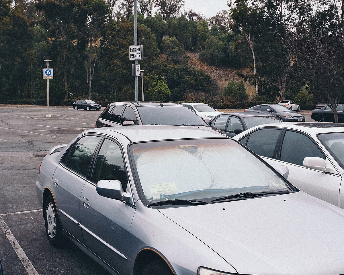 穿著畢業服、頭戴方帽,Brianna 正開心慶祝她完成從心理學系畢業的夢想,但這夢想得來不易。因為曾有兩年時間,她和弟弟在街上四處尋找可以停車睡覺的地方。在洛杉磯,睡在車上已經變成一件平常事,她甚至為此作了一張卡片,上面用三種顏色寫下不同標語—紅字,此路不通、橘色,這是唯一一個我們白天可以睡覺的地方,最下面則是用越來越小的綠色字體(停車許可)標註:本區域居住權,可與其他遊民交換使用。「我曾經睡在車內,被一名企圖搶劫我的陌生男子嚇醒⋯。 那晚事情發生後我難以入睡,但隔天早上還是必須早起、離開停車場去上學、煩惱下一個可以洗澡的地方。」