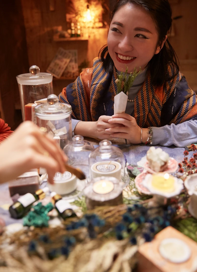 在大稻埕的某處,Emily和珍珠正愉快地把玩水晶、精油與芳香植物,笑稱這是「女巫聚會」的倆人,只要開始討論身心靈領域的事就停不下來。原本在創意產業工作的Emily和造型師珍珠,在紛紛擾擾的都市生活中,找到自己的本命,往療癒身心的方向走。