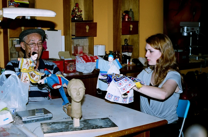 「師父從不藏私,總是不厭其煩地為我示範。」學藝過程中,她也深刻體認到東西文化的不同,「在西方總是有許多競爭,你必須放大自我,幹掉別人才能獲得工作。但在這裡大家都會互相幫忙,彼此學習,別人幫我刻木偶,我就幫他縫戲服,即使我們來自不同劇團。這跟我在西方劇場工作的經驗非常不同,我覺得很快樂。」