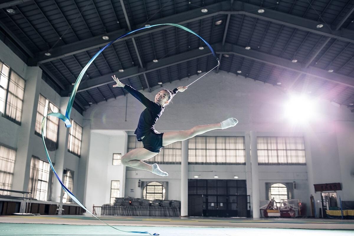 她把兩張椅子架開,腳一前一後騰空劈腿,得維持這樣的姿勢五分鐘,這只是熱身的其中一個動作。教練說,腳背要記得下壓,國外選手指尖可是會碰到地板,像老鷹的喙一樣尖尖的。從小一到現在,她早已數不清這個動作做過了幾次。