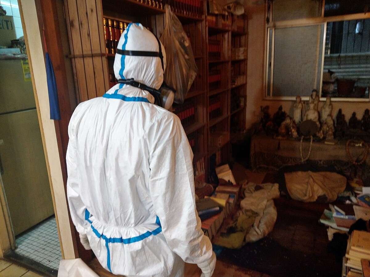 最可怕的是沒有人一起分擔恐懼。我通常會第一個到現場,先做基本處理,讓委託人和同事隔天到現場時味道不會那麼重、場景不會那麼可怕。大部分的時候都是我一個人,有時候沒水、沒電,雖然有戴頭燈,但畢竟是陌生的環境,往生者倒臥的地方也不一定在床上,什麼地方什麼可能都有,很像在玩《沉默之丘》(恐怖生存遊戲)。防護裝備保護得了身體,卻沒辦法武裝自己的內心,恐懼跟孤獨襲來,任何風吹草動都可以把自己嚇得半死。
