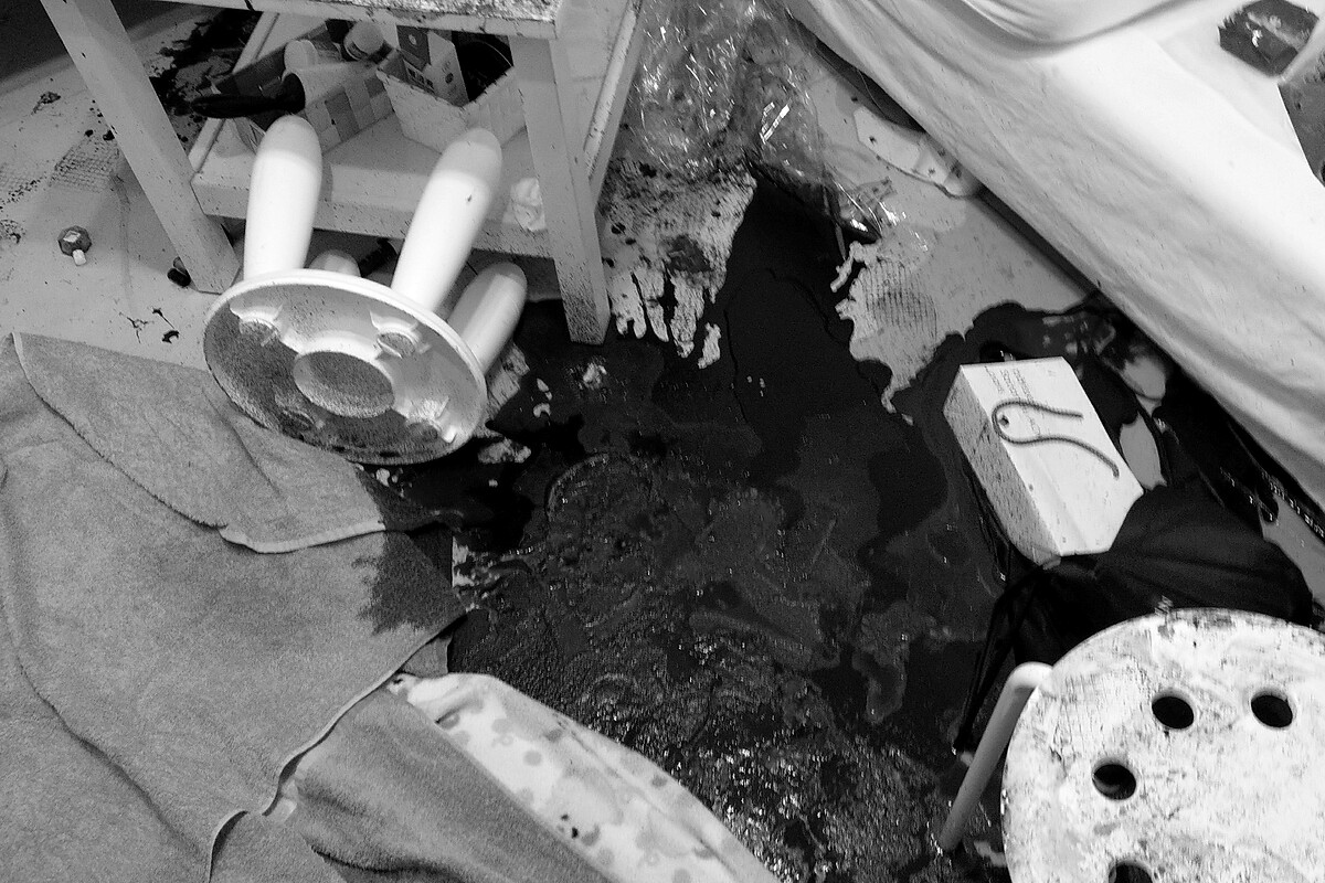 將遺體移至接體車後,老闆來到現場,給了我們長柄刷,要我和同事打掃水塔。就這樣,我們兩個光著腳,打赤膊,一人拿一把長柄刷開始清潔水塔,這就是我接觸特殊清潔的開始!那時的我內心哀號著,「為什麼我會在這裡洗水塔?學校沒說會遇到這些事情啊!」