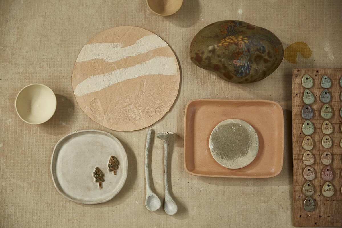 圈圈和美美並非一畢業就投入陶瓷創作,兩人投入職場四五年後,才發現自己想要的不是這種生活。理念相投的兩人開始一起規劃工作室,選在苗栗的原因很簡單,是因為想遠離城市,在步調比較慢的地方好好創作。本來研究所就主修藝術創作的兩人,製作陶藝也是水到渠成而已。
