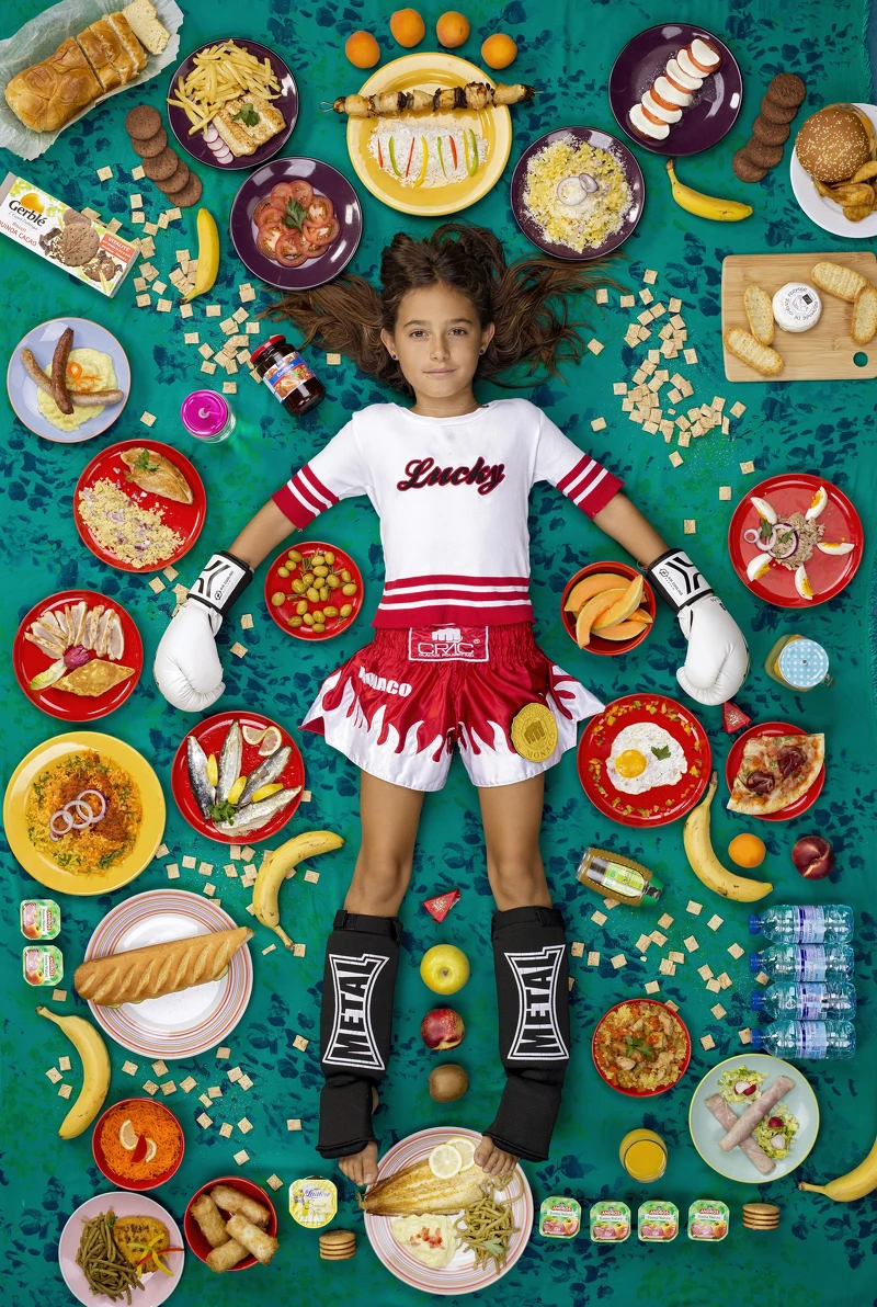 Amelia 來自義大利埃特納火山腳下的西西里村莊,她的日常飲食色彩繽紛:豆子和櫛瓜的綠色、聖女番茄的紅色、彩椒的黃色,和萵苣的紫色等等,大部分都來自家裡的小菜園。她的餐點以這些新鮮的蔬果為主,每週會吃一次魚或肉。每一餐幾乎都是家裡烹煮的,除了披薩紙盒,Amelia 的飲食裡看不到外帶食物和包裝,這不只是對環境友善,也是對身體友善。Amelia 很喜歡自己的生活,她說以後要當醫生,繼續照顧父母的健康。