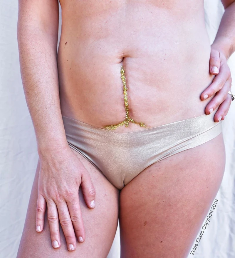 A:這個網站啟發自我自己和周遭朋友們接受自我身體的旅程,我決定用藝術打破與身體的負面關係。一直以來我都覺得紋路、疤痕有它們的魅力,所以用亮粉描出這些身體上的線條,再攝影記錄下來。這起初只是與家人朋友分享,後來發現所有人都對這些紋路記號有所共鳴。