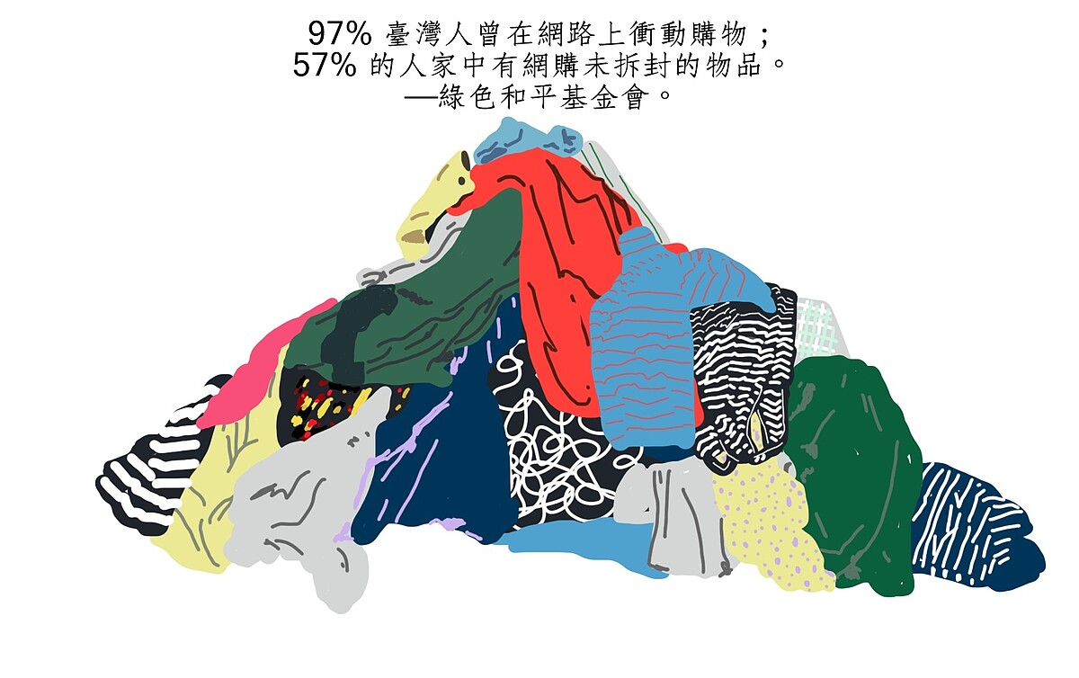 如果「衣櫥是人的第二個身體」,那賴庭荷絕對是三折肱而成良醫的最佳範例。她笑說自己20歲時「喜歡衣服到飢餓的程度」,有錢就敗家,沒錢就去聞新衣服也滿足。在加入推行環保的社團後,她的感性和理性開始拉扯,轉而玩起二手衣搭配,「因為沒有心理負擔,越拿越多,我從來不敢整個打開衣櫥。」某一天,她的衣櫥雪崩了,被壓在衣服下的她開始覺察,「我的飢餓感好像一直沒消失?怎麼辦?」