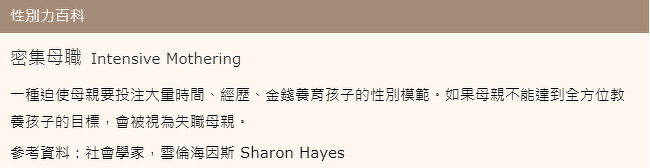 首先,儘管大部分人都知道生兒育女不只是母親的責任,但在這則貼文裡,我們還是看到「密集母職(Intensive Mothering)」的影子。
