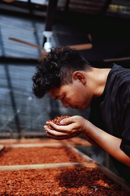 「我都把它稱作有靈魂的巧克力,它會熟成,像紅酒開瓶之後會醒酒,再加上是發酵的,有時候不是很確定那個風味到底是來自於哪個環節,是來自於品種?還是發酵?還是烘烤?交叉排列組合起來有幾千種可能。所以常常要再去回溯、試驗,才能確定到底是哪一個環節,影響了什麼風味。」