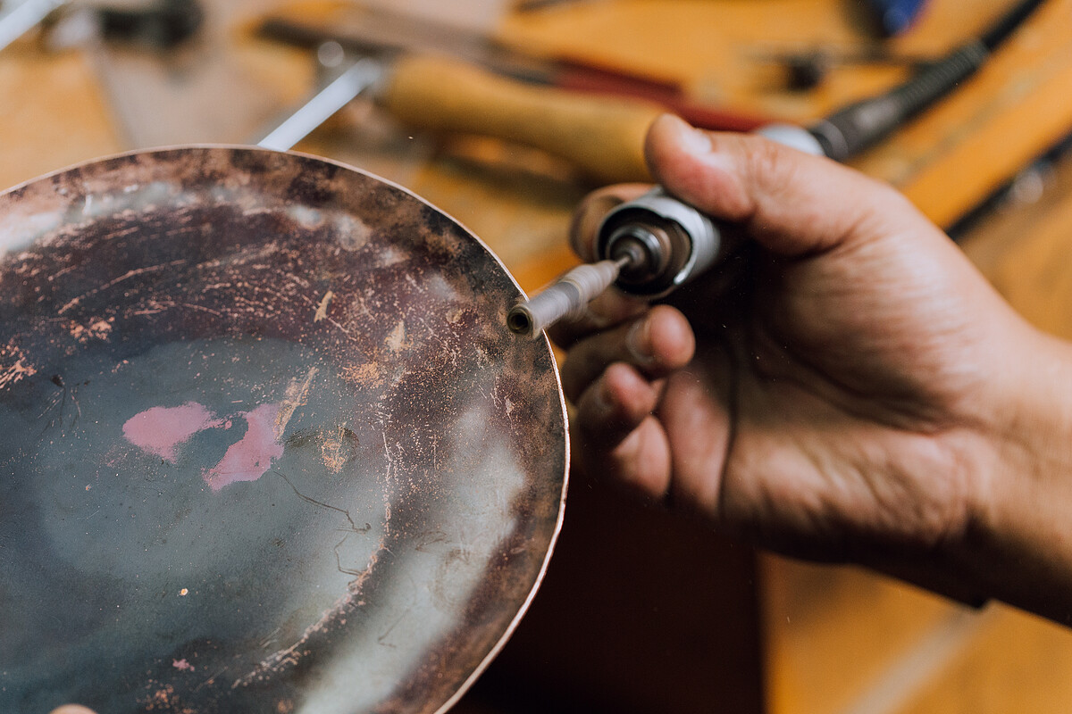 金工串連塗鴉,以往擅長普普風塗鴉的呂學淵,將手法移植到台東原住民傳統圖象上,聚焦部落人物與服飾作為本次共創核心,不僅希望能共同傳達尊敬地球的理念,和周聖賢老師也各自跨出舒適圈,創作出專屬於台東的工藝結晶。