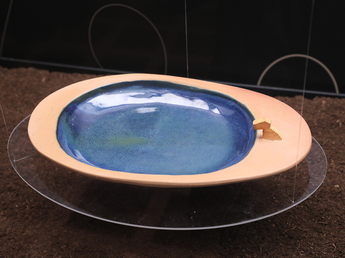 陶藝碰上建築,由建築師林淵源從台東豐美的地景為發想,畫出草圖交由黃郁絜捏製、燒出陶器作品。這組共五件作品分別將山、海、湯、田、樹的自然意象具象化為實用的日常器皿,淵源老師解釋:「建築是生活的容器,食器也和生活密不可分,我希望用『生活』為核心連結建築與陶藝。」而在郁絜的巧手之下,溫厚的陶土成為了承裝兩人想像力和設計能量的完美容器。