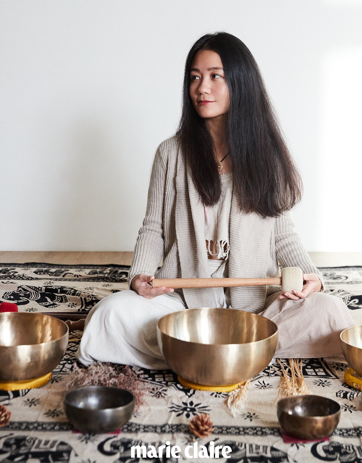 去年新冠肺炎剛冒出頭時,旅行中途從哥倫比亞趕忙回台灣,生性自由愛奔走的她,走進了憂鬱低潮,也無心回到上班族的日子。然而,卻在練瑜珈紓解時意外接觸到頌缽,第一聲敲下,「全身細胞都被震動的感覺,從頭麻到腳那種。」她說。一敲鍾情之後,除了找老師上課,也四處拉朋友練習,累積實戰經驗。發現,缽該怎麼擺、敲的間隔如何,有時也像是自然的反應,感覺自己是生來要做療癒的體質。