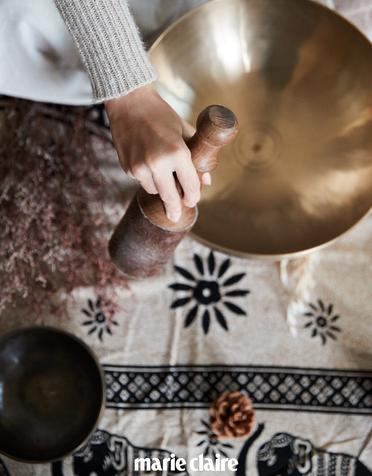 當然第一個就是聲音,它的聲音真的很美。再來我覺得它就像一個很溫柔的陪伴,聽缽的時候,會覺得它給你一股穩定的支持。而且,因為它是聲波,完全沒有侵入性也無害。尤其是磨缽,敲缽像是在皮膚表面按摩,磨缽則是穿透你的肌肉,比一般按摩更深入,同時又很溫柔。