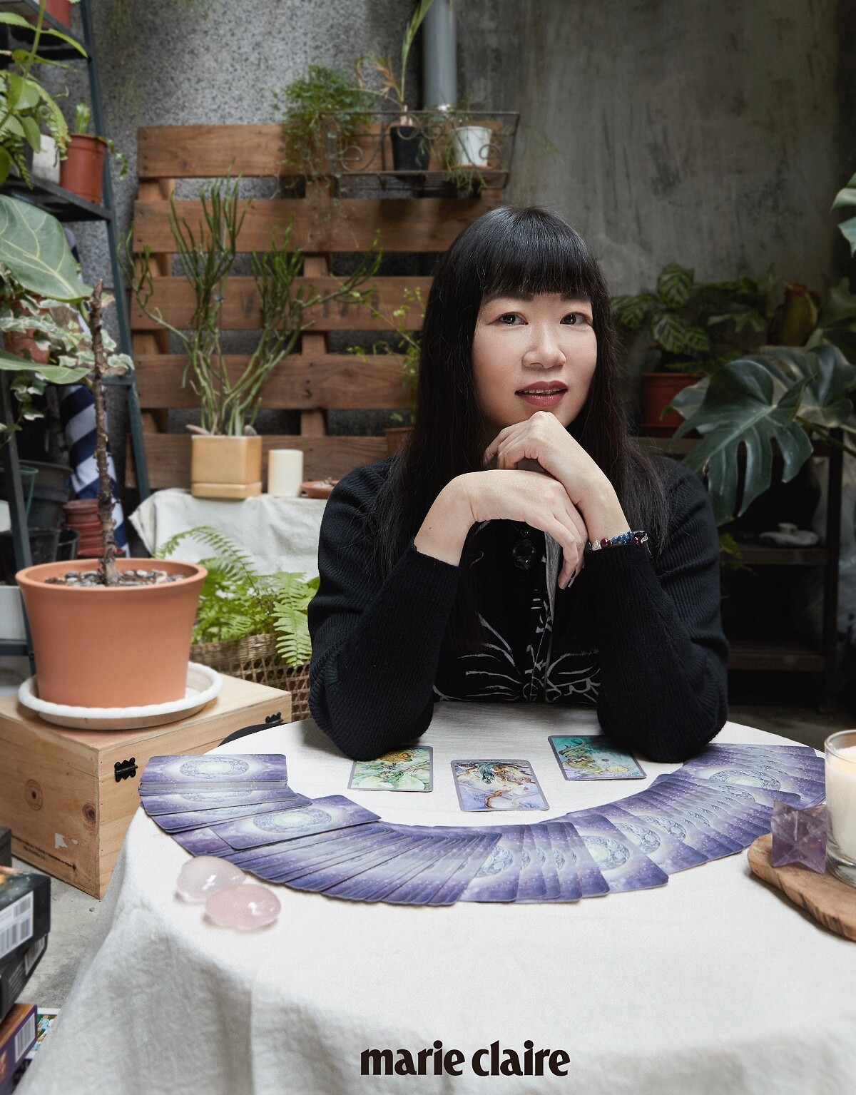 小學時,她家買了一套神祕學叢書,送了一副小小的牌卡,上面畫著「行星」「倒懸人」「情侶」,她直覺很喜歡,後來才知道那是塔羅牌。真正動念想更深入了解塔羅,是出於行過中年對人生產生了疑問,想找到一種和自己對話的工具,「當時有一種外在成功跟內在感受,有一點不同頻率的狀況,我想了解自己到底想要什麼?」