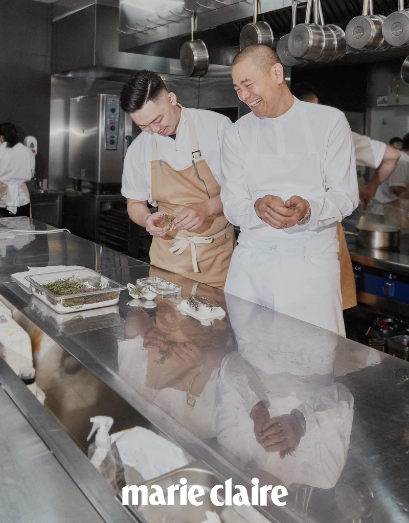 不過,兩人也是有邏輯背道而馳的情況。王奕翔提到某次在日本的活動,夥伴把糖加成鹽,他當下的解決方式是,思考如何把味道平衡回來,但江振誠的決定卻是打掉重練,以現有的材料重新製作可以搭配的醬汁,「這次的經驗讓我非常震驚,但也讓我更加認知到,自己還需要儲存更多味覺的資料庫。」回想起當下的情況,江振誠也坦承說,第一時間就知道醬汁救不回來了,那不如再做一個全新的,「我也會趁機讓他們理解,原來這個食材還可以再搭配別種調味,那這就是一次很好的學習契機,雖然後續還是會被我念。」