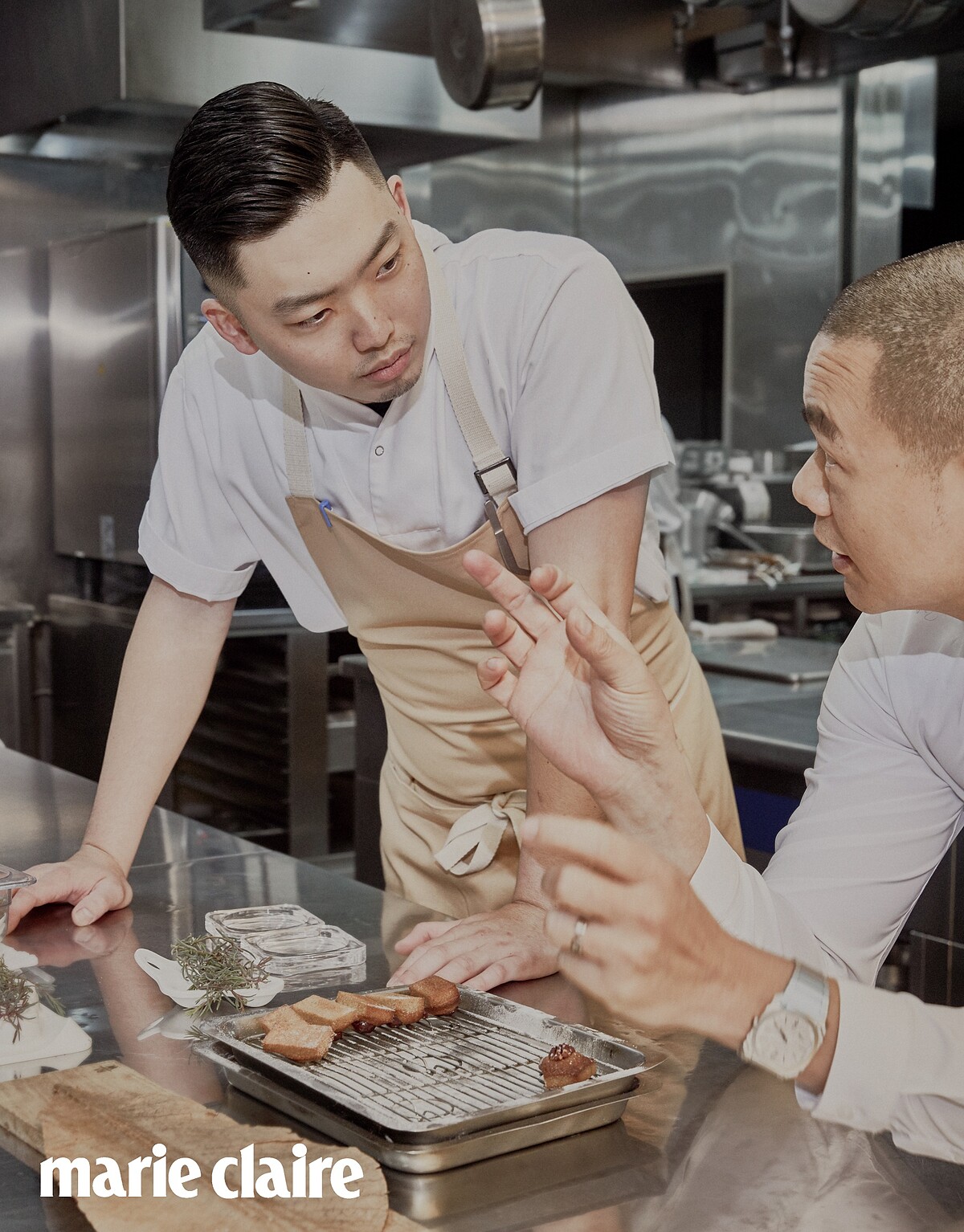 不過,兩人也是有邏輯背道而馳的情況。王奕翔提到某次在日本的活動,夥伴把糖加成鹽,他當下的解決方式是,思考如何把味道平衡回來,但江振誠的決定卻是打掉重練,以現有的材料重新製作可以搭配的醬汁,「這次的經驗讓我非常震驚,但也讓我更加認知到,自己還需要儲存更多味覺的資料庫。」回想起當下的情況,江振誠也坦承說,第一時間就知道醬汁救不回來了,那不如再做一個全新的,「我也會趁機讓他們理解,原來這個食材還可以再搭配別種調味,那這就是一次很好的學習契機,雖然後續還是會被我念。」