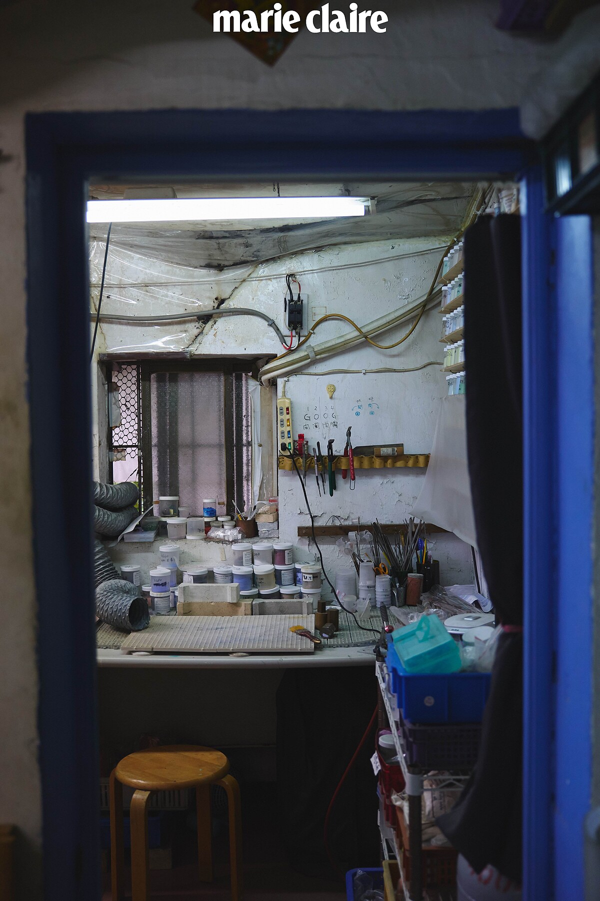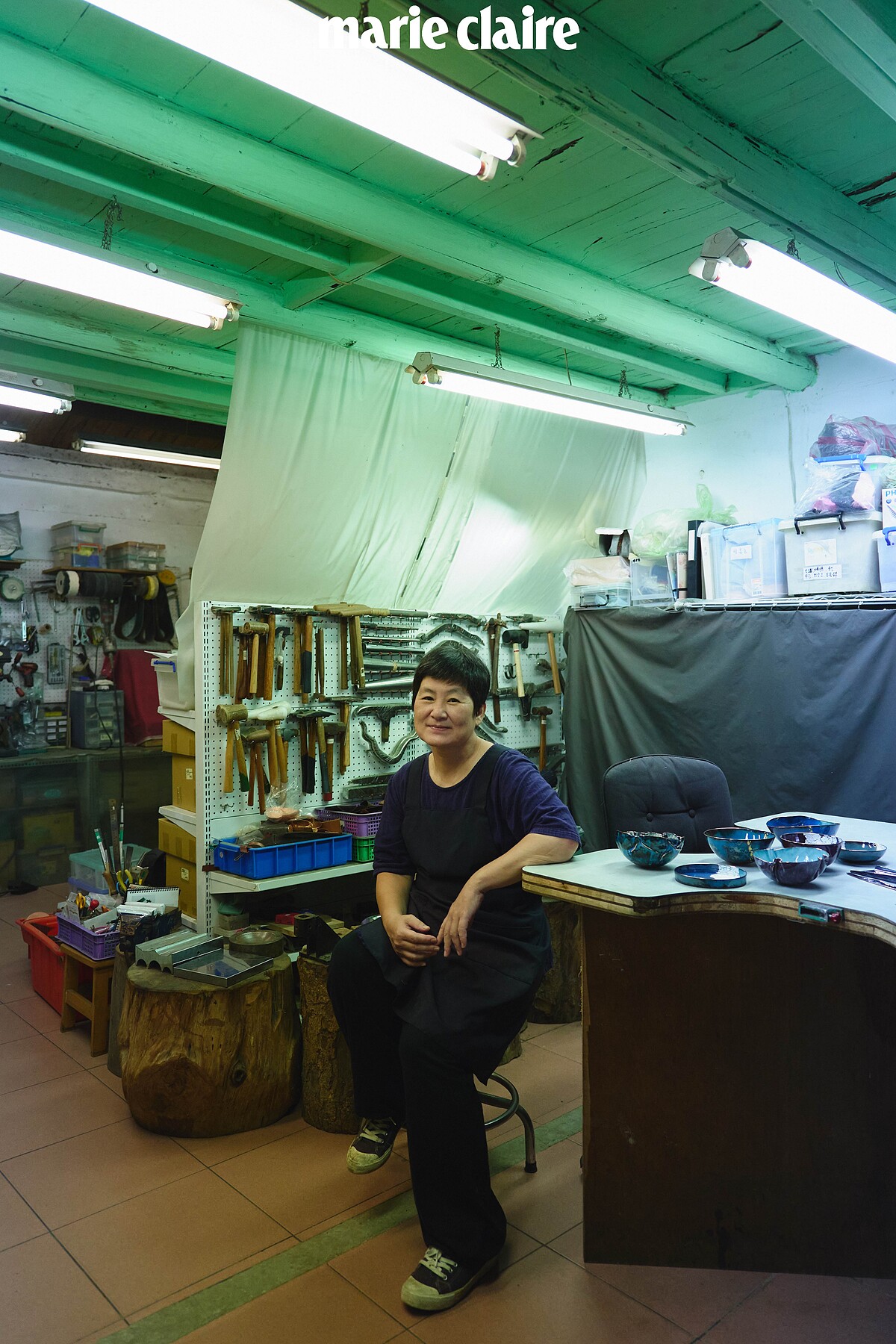 「鏨工坊」工作室隱身在南港都會區裡的一處三合院落,低低矮矮的舊式平房裡,擺放琳瑯滿目的各種器具、銅胚、玻璃色料⋯,是燕華老師冶煉出一個個琺瑯藝器的小洞天。1996年學成歸國後,她先體驗了一陣職場生活,同時自己在家中手作金工,直到2003年才感覺時機成熟了,與美國讀書認識的同學王鎮秋老師一起找到這處,將工坊開張。