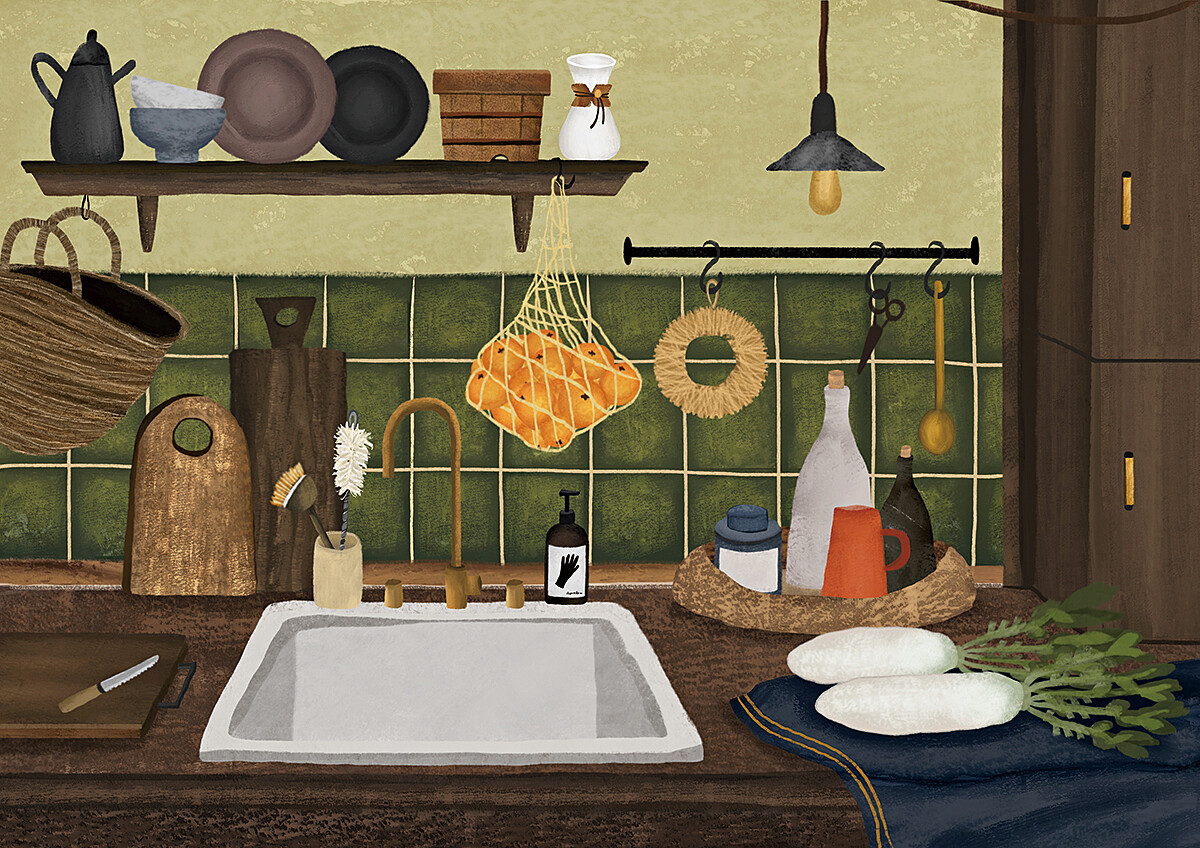 常芷的求學過程就如尋常的設計系所學生相同,台南應用科技大學畢業後即留在家鄉台中從事設計相關工作,然而她的才華並不只侷限於設計的領域;因為喜歡童書《巴黎的獅子》開始留意作者碧翠絲‧阿雷馬娜(Beatrice Alemagna)的作品,十分鐘情於作者以奔放的筆觸表現再加使用少見的拼貼手法,畫面呈現微妙的平衡感,深入了解原來碧翠絲也有同樣的平面設計背景,這也給了她創作插畫的動力與想法;去年開始她將喜歡的食物、場景、日常選物用插畫的方式紀錄在 Instagram 帳號裡,畫面呈現樸拙的質地、溫暖的顏色,喜歡古道具的她深受影響,未來更計畫有出版品、周邊商品的開發,現在插畫創作已成了她生活的一部分了。