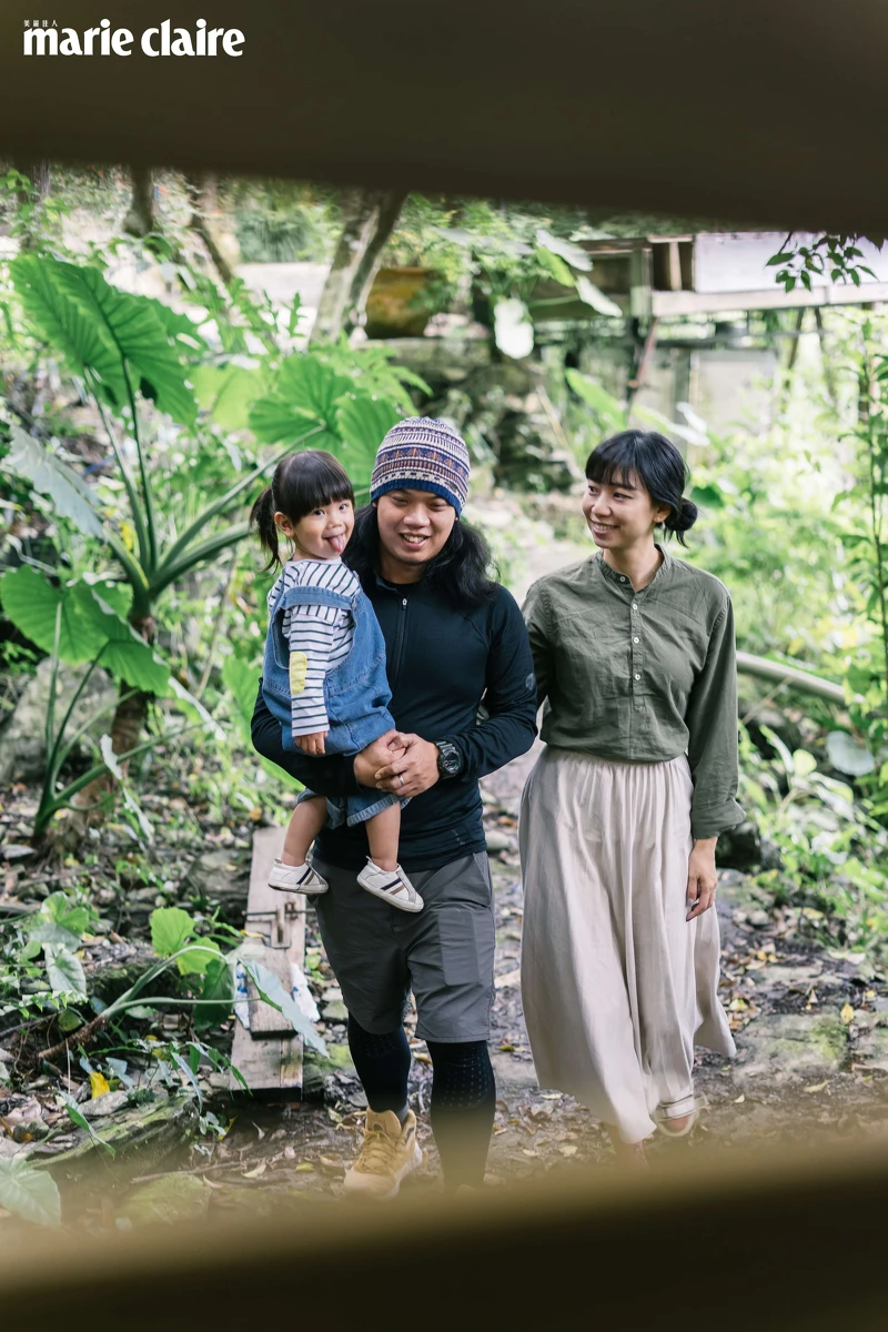 此時我們在一面清爽綠意夾帶著超現實的夢幻光影襲來下,與阿達和他的太太林貞余(娃娃)、女兒蔡朵棠(朵朵)窩在第二露台上,由藝術家范承宗全新打造的鳥巢裡,在樹與樹間,蒔花弄草森呼吸的光景中,阿達倏地湧上思緒,娓娓道來,之前他們有養一隻很有靈性的山豬波波,結果2019年牠不小心在山林裡踏中陷阱離開世間;當時由於夫妻倆太難過了,就找寵物溝通,「問牠能否回來當我們的小孩,而波波不僅說出每次娃娃媽媽看到牠,都會戳牠臉說:你好帥喔!是豬界金城武耶!來證明就是牠本豬,還吐露會以牠的方式,讓我們知道是牠投胎回來,並從公豬改當女生。」