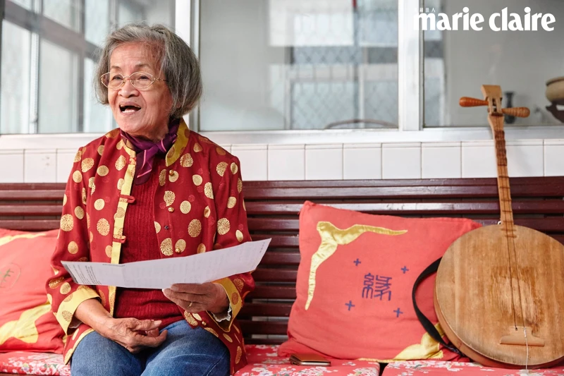 在恆春德和里的小平房,門口兩隻大黑狗趴著酣睡,今年90歲的陳英阿嬤拄著拐杖在屋裡徐行。她去年摔傷後經歷了髖關節大手術,至今走路仍有些危危顫顫,但是只要拿起月琴,手指撥撩幾下,瞬間恢復意氣風發。她時而如少女嬌俏,時而如婦女堅毅,待琴聲鋪陳半晌,她趁最唯美的時機張嘴唱出:「思~啊~想~~啊~枝~~」歲月無盡滄桑,往事百轉千回上心頭。