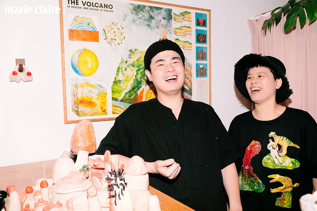 第一次見到雨答與 Yoki 是好幾年前在新店山上的一場戶外音樂祭,中性打扮的他們看起來臉上就寫著「我是藝術家」,接著又看到「火山販賣舖」的攤位上擺滿陶製小屌、小奶,當時心中默默覺得好酷,一對話,就如同他們對自己可愛的介紹一樣「帶著傻氣」。