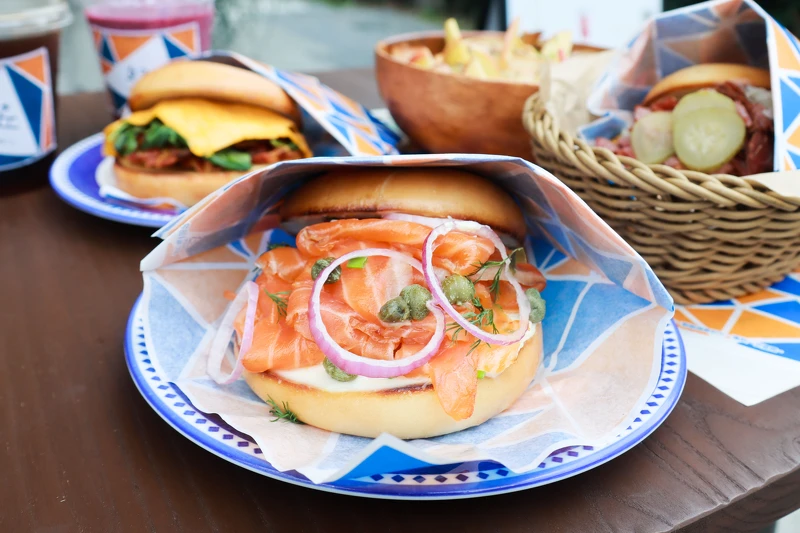 口口都能帶出小麥香氣的貝果,奶香濃郁但酸度適宜、清爽感滿分的Cream Cheese,巧妙地與充滿香氣的煙燻鮭魚達成平衡,有魚肉的甘甜又不過度油膩,再搭配解膩同時也帶來另一重香度的酸豆與蒔蘿,撞擊出清新溫潤的風味,這是台灣貝果品牌好丘合作米其林名廚James Sharman,聯手打造強調Real Food的「真食菜單」中,其中一款「煙燻鮭魚貝果堡」。