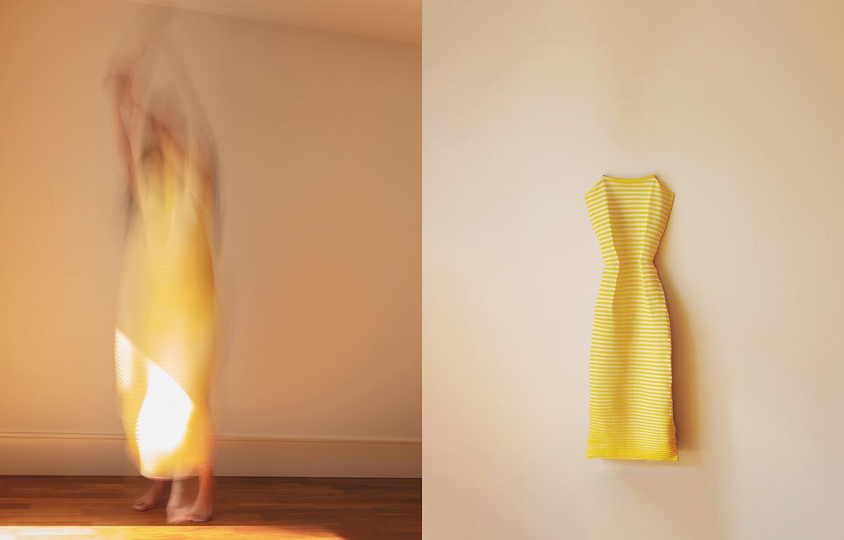 黃郁媚 Yu Mei Huang(以下簡稱Mei):這次的創作透過不同的拍攝手法展現了布料在有無身體之間的型態變化。當一塊布被平放與被穿著後從2D到3D型態上的改變,意圖挑戰大眾對於針織柔軟的印象,並探討身體如何成為一個創造織品輪廓的媒材。