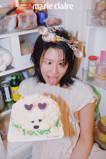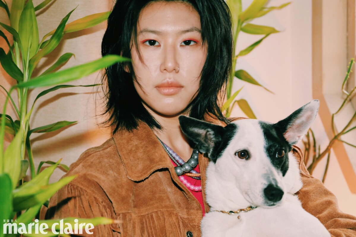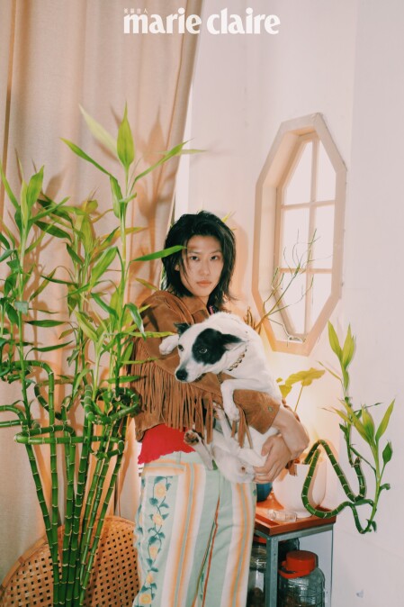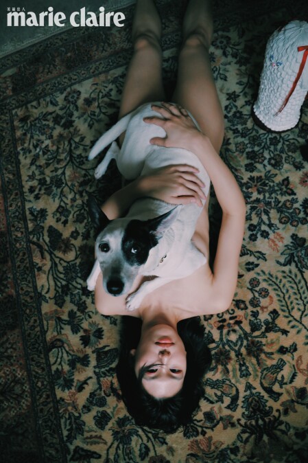 認為人生不該設限,也無需定義自我的于寧,「覺得我蠻千變萬化,可以換個環境就蠻快適應,或是Get到當時氛圍;是個適應力滿強的人,有點像是鏡子,到每個場所能蠻快速反映出那個地方的樣子,風格可以一直轉變。」她說,「就像我自己穿衣服,其實沒有特定風格,偶爾也會穿潮T」,而在拍攝的這天,她更大方自述不知道要穿什麼服飾受訪,那就不穿衣服,抱著我的狗 Coco 一起拍吧!如此率直坦誠的她接著說:「我也很喜歡 Blackpink,但也愛看一些 YouTuber,不會特別分主流或不主流的喜好,也不太會特別去排斥或批評,因為從中都可以看到他們的厲害之處而會去欣賞,這應該算是我蠻大的優點和還蠻珍貴的特質。」