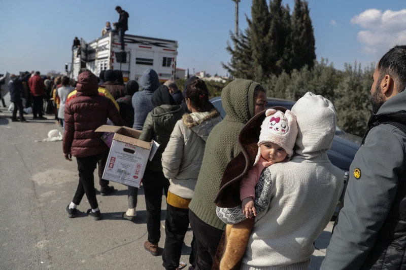 隔天早上,我花了三個小時向東南前往哈塔伊省(Hatay)。途中經過的道路充滿裂痕,而那些著手要離開從小生長的城市的人們,在將過往的一切都打包後,正坐在車子裡排隊等待加油。每個人的臉上都有相似的痛苦,以及差不多的空洞神情。當我們愈接近哈塔伊,那些難以想像的破瓦殘礫開始出現在眼前。毀壞的清真寺,紗製的帷幕垂落在混亂的地面上,傢俱看似掛在空中,小孩的玩具四散,還有衣服……地震發生第一天被分送來作為團結象徵的衣料製品如今散落在街道上,原先裝有物資的包裹紙袋、紙箱則是被隨意丟棄,因為這裡根本沒有任何的系統和調節力可言。我們決定進入鄰近的城市薩曼達厄(Samandağ),當我們抵達時,悲傷的情緒卻更加乘。