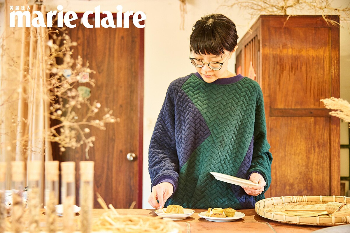 精緻甜點一字排開,讓人根本想不到材料是醜蔬果和邊角料,連榨油剩下的南瓜子和奇亞籽都可以化作令人食指大動的甜點,對這些食材巧手「施魔法」的人正是黃尹宣,她笑說:「媽媽說不可以玩食物,但我本來就很喜歡『玩食物』,手邊有任何材料,可能都各自只剩一點點,我就會思考怎麼組合使用,可以說是清冰箱料理。在滿足創作慾望、減少食物浪費的同時,我更希望將環保落實在生活中。」她本就對氣味敏銳,比如味噌有發酵氣味、有鹹味、有米的顆粒感,她就會以手邊材料組合成類似風味。