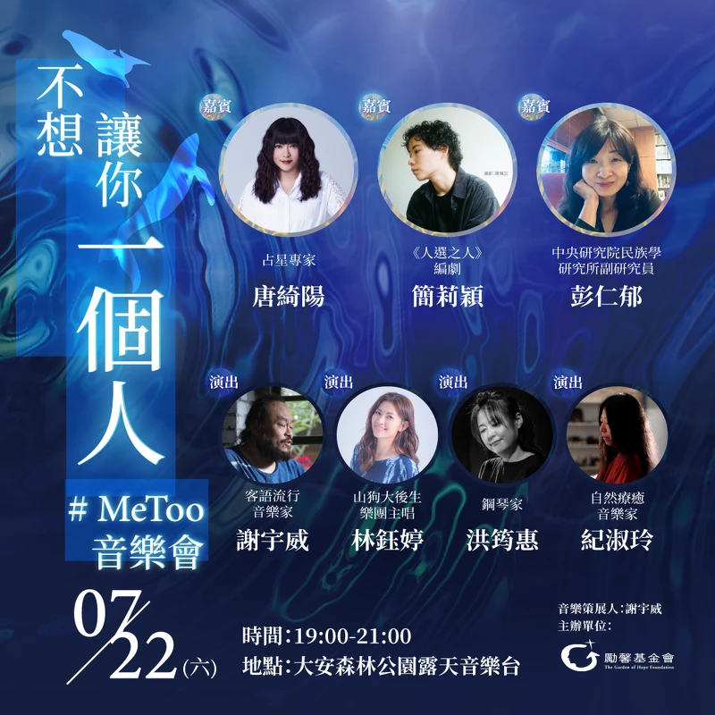 勵馨基金會凝聚療癒社會的溫柔力量!「不想讓你一個人#MeToo音樂會」7月22日大安森林公園見