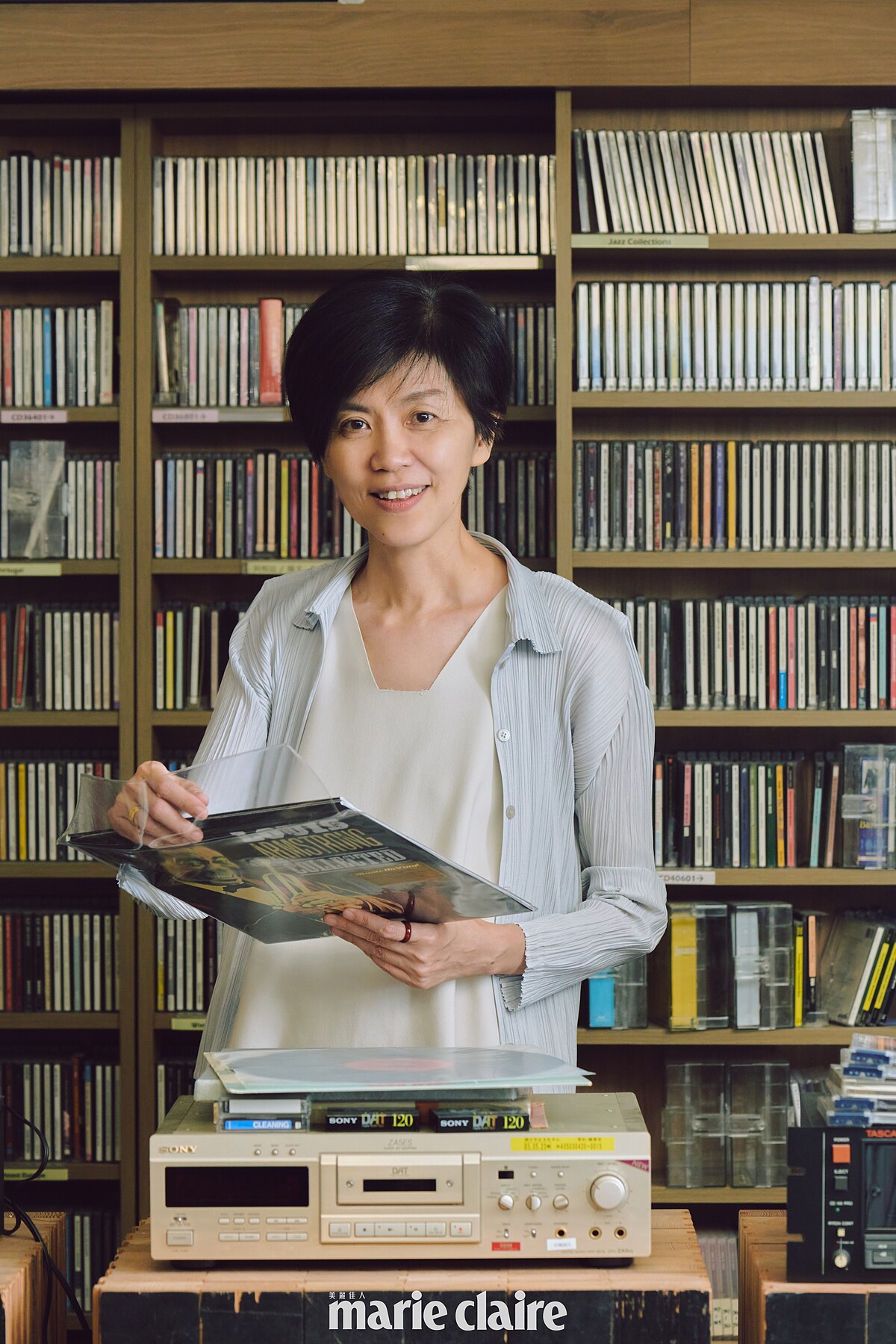 置身在兩廳院的表演藝術圖書館裡,牆上排滿了書籍與爵士專輯,供民眾平時來這裡浸淫在這靜謐的空間裡,感受書香與樂香的洗禮。而這親民的公共空間,標榜「讓所有的人走進來,一起打開表演藝術的多種閱讀方式」,與兩廳院平時給人宏偉如宗廟的印象形成有趣對比。