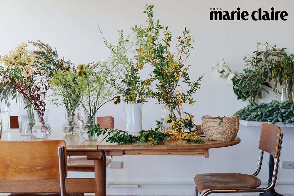 綁花除了帶來療癒的成就感,也引出看待世界的新思維,柯采岑提到,在綁花的課程中,需要花費不少時間整理花材,而她非常喜歡這段整理的過程,可以專注地替自己準備好接下來要發生的事;將花材整理完畢之後,就進到以螺旋方式固定花束的環節,柯采岑想起初次綁花時,老師曾這樣提點大家:「想要把花綁出空間感,那麼虎口跟掌心一定要越放鬆越好,如果只想著要控制它,那麼植物也會感到很緊張。」