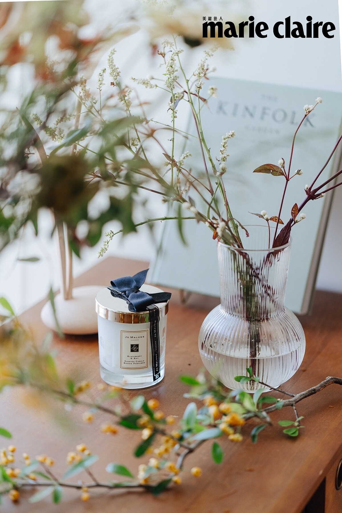 在綁花的時候,如果空氣中飄盪著淡淡香氣,就會讓人感覺很溫暖,因此香氛蠟燭是習花時的必備小物。