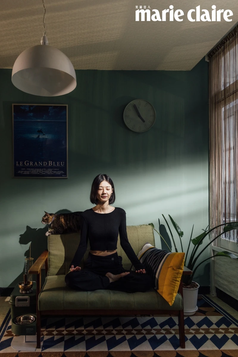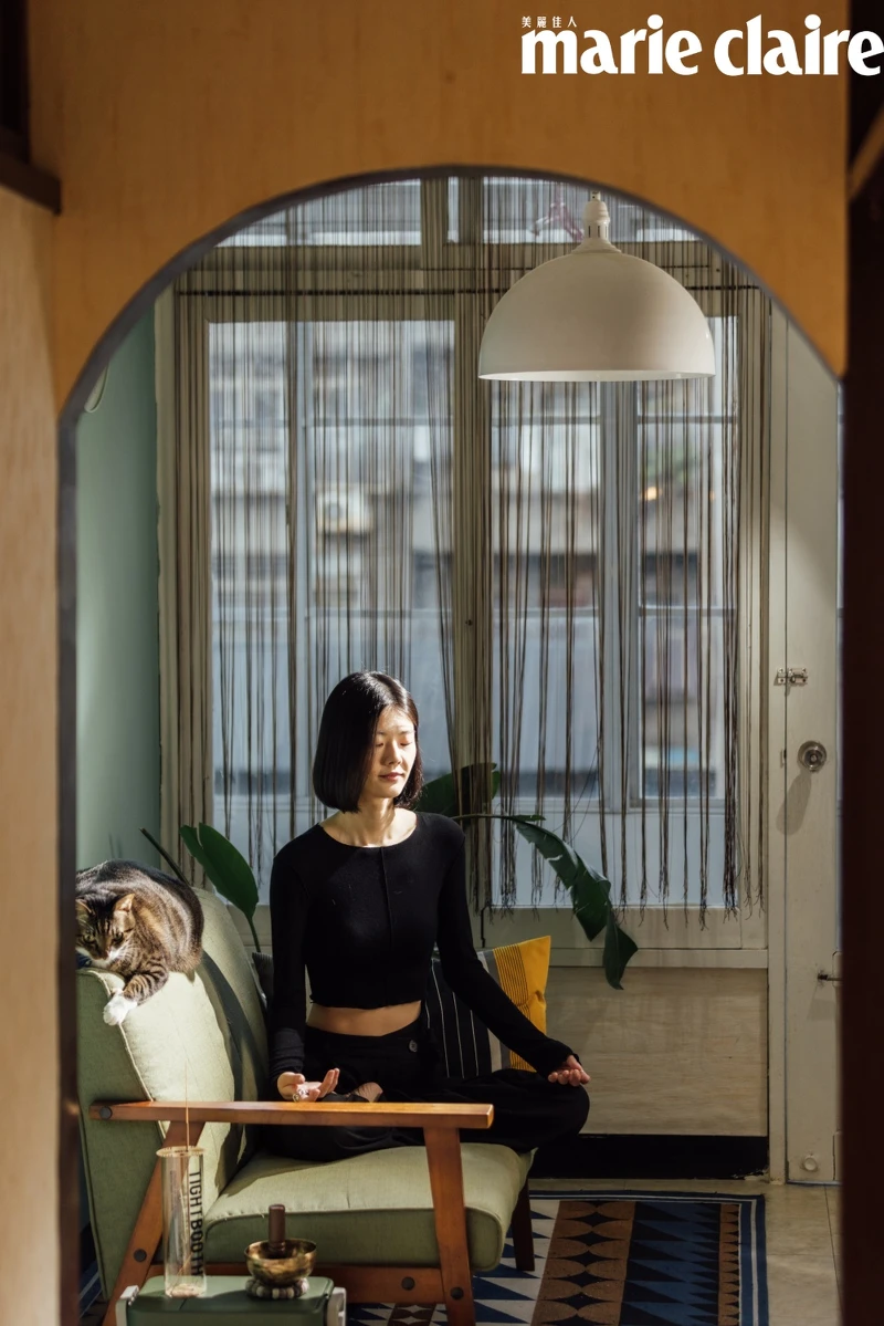 閉上眼睛、雙盤而坐,Misc準備進入冥想世界,貓咪子子安靜陪伴在一旁,構成寧靜又溫馨的畫面。然而現在眼前的平靜,其實是透過Misc長期修行而來,她回憶過去自己的情緒相當壓抑,因而造成某種程度的心理創傷,唯一發洩管道只剩下躲起來偷哭,「後來接觸坐禪開始實踐冥想,不但讓我的心好起來,也同步接受到更多療癒的能量。」Misc和緩地分享自己的轉變過程。
