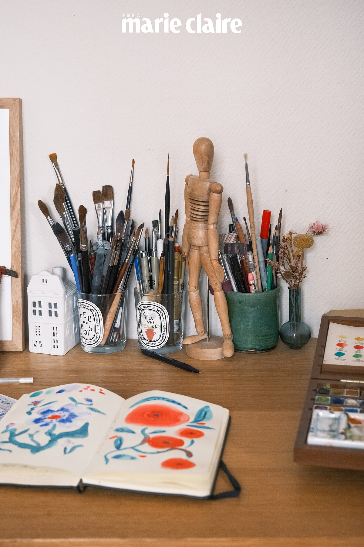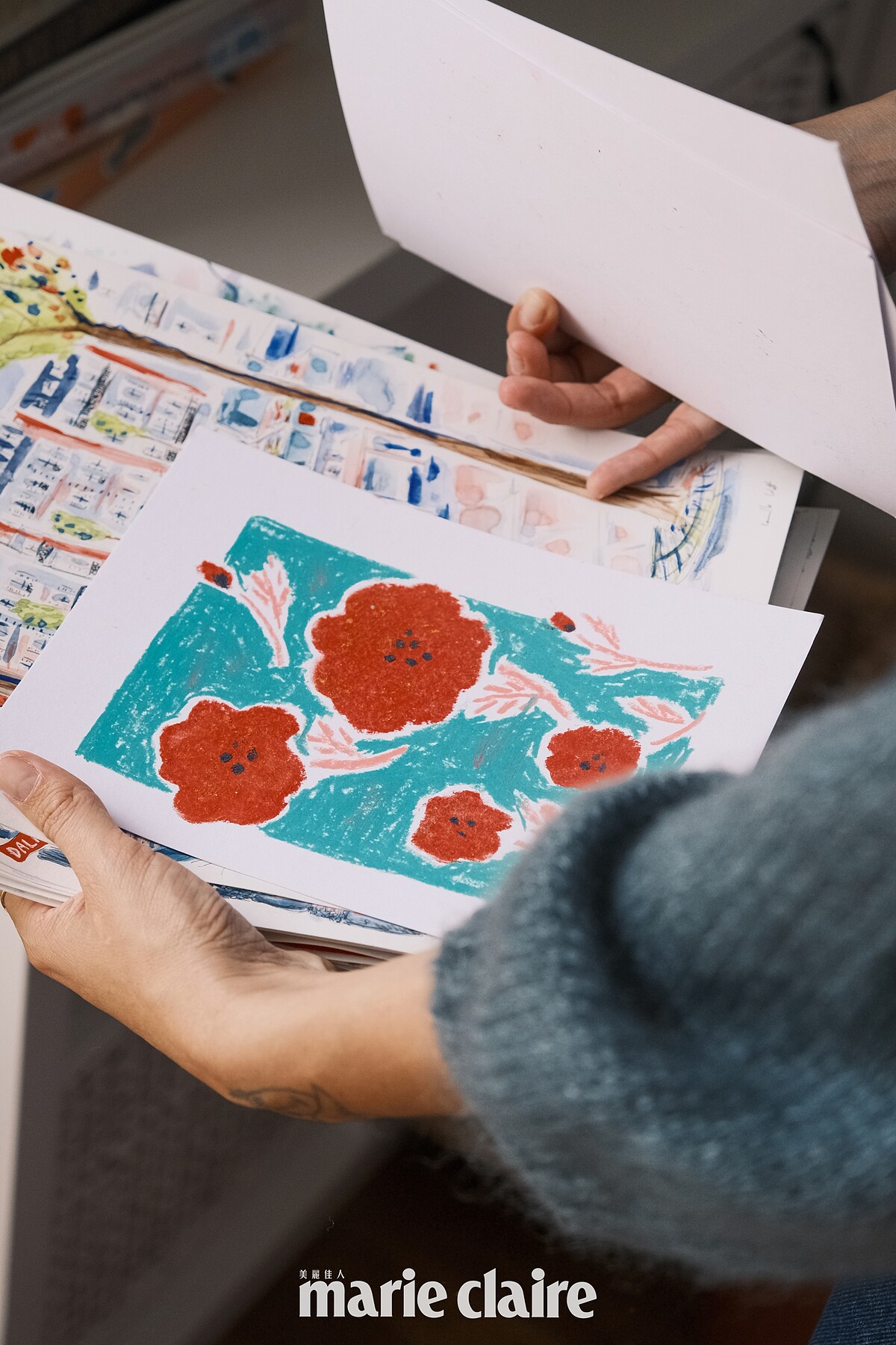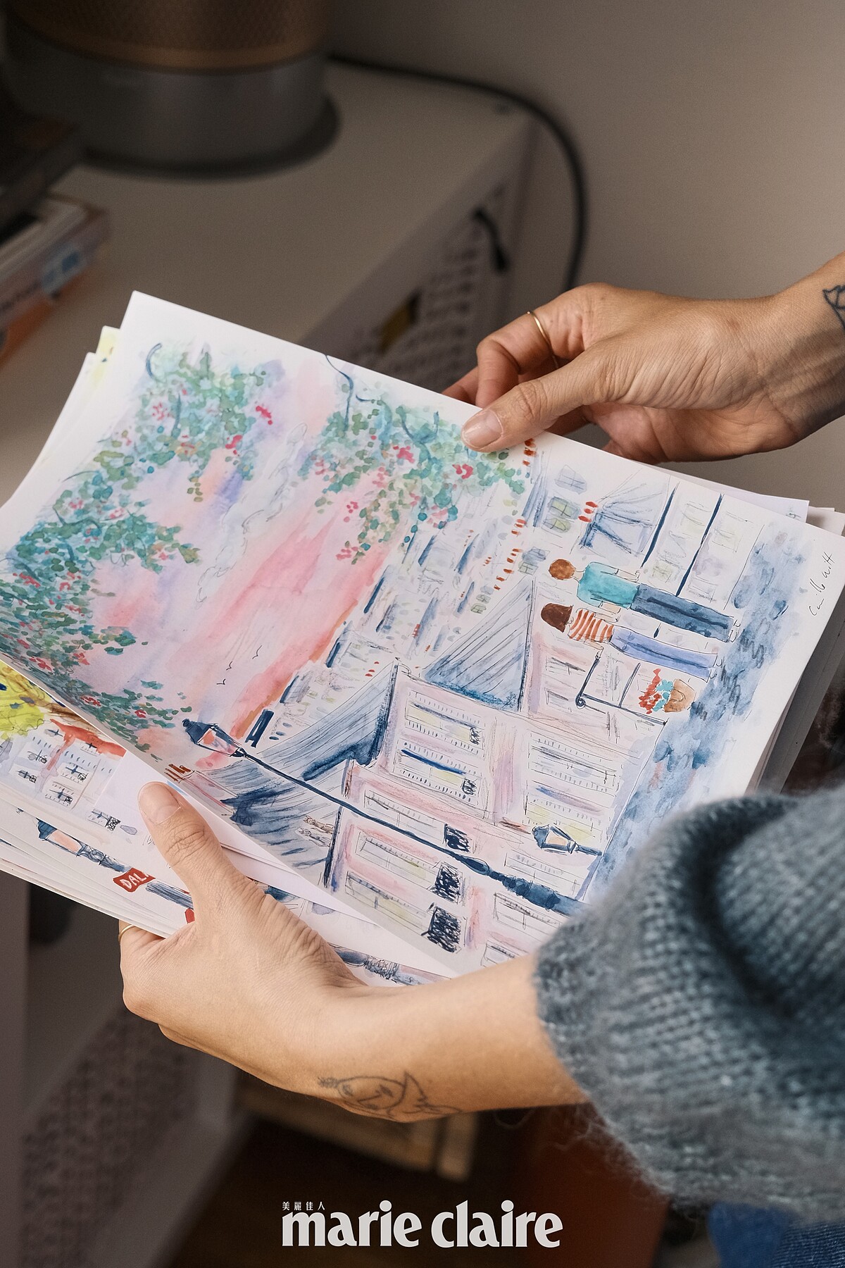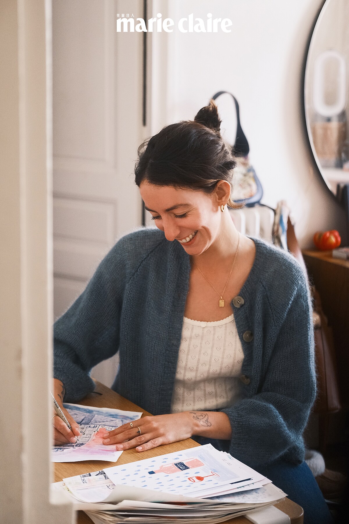 而如果有工作需要,Camille 會踩著腳踏車去午餐,或趁著出太陽的日子散步去開會、喝杯咖啡、在戶外畫畫。「如果我沒有事情要忙,或者覺得懶洋洋的,我會跟老公待在家,窩在沙發織毛線,或者去鄉下的小屋放假——我真的很愛巴黎,不過有時候還是需要遠離一下,接觸大自然、重新充飽電,這很重要,能讓我更專注在創作上,因此我非常感恩自己能有這樣的生活。」