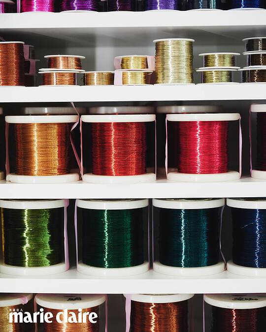 「以前蕾絲都要手工勾針,不像現在工業化可以做很多,我覺得很有趣就跟阿嬤學。」他描述自己的技藝傳承,以及不同媒材的使用。「編織的曲線,看起來可能滿柔弱,但其實銅線的材質是很堅韌的,讓我覺得好像女性一樣。」