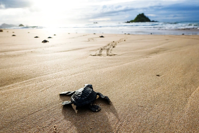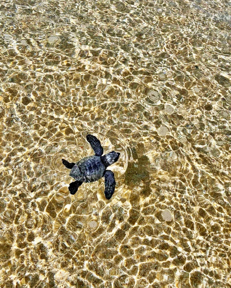 把大海與海龜保育視為人生第一要務的他娓娓道來:「海龜寶寶一出生就要靠自己走十米路回海洋!這是大自然給牠們的特訓,因為這段路程對牠們來說非常關鍵,是啟動小海龜天生內建的 GPS 沙灘印記,能幫助牠們強化四肢,準備好能在海陸生存下去的力量,等牠們長大後,才會認得家巢,回到原生沙灘產下一代。」