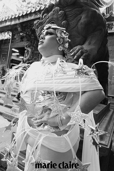 這次來臺表演,四位皇后是受DJ Strawberry的邀請,也各自準備了黑白兩套做工精細的服裝,「我們有一起討論過整體造型,雖然我們每人的style百分百不同,但希望在舞臺上和照片裡,能呈現出一種團體的力道」,Annèe解釋道。「但是行李好重喔」,Kandy一邊嬌嗔著,一邊拿下她靈感明顯來自泰國傳統服飾的頭冠。聊到她們認為泰國的「變裝圈」和臺灣的是否有所不同,Annèe說到:「我個人認為沒什麼不一樣,但泰國的皇后們很仰慕臺灣的皇后們,臺灣的皇后也會覺得泰國的皇后很讚,彼此都有在互追社群。這趟來我們又交了新朋友,像是皇后Tiffany Queen,就很可愛地來跟我們打招呼。」
