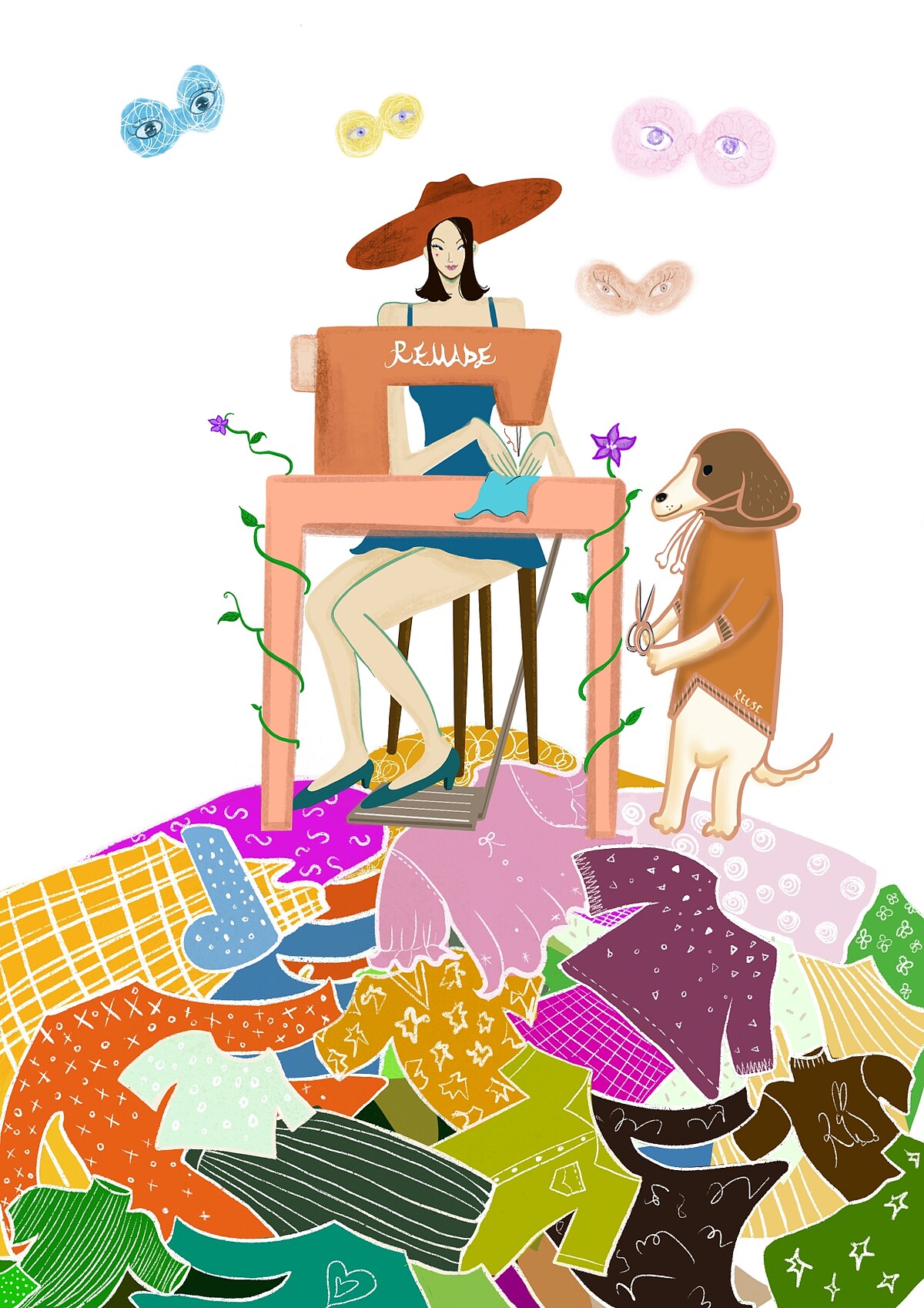 除了上述兩種主流做法,可以思考重製時尚是否存在更多可能性?多方創意融合的「跨領域」合作模式會是一項不錯的嶄新思維。REHOW(如禾永續文創)的成立就是一個為了專注在「永續創意」上不斷延續的創作單位,單位除了推動將廢棄材料再製升級外,同時也從穿不到的衣物出發,攜手台灣創意領域人士,用其視角與美感,賦予單品新生命,打造循環利用的無限可能。曾經的合作案例包括與日本 UNIQLO 及台灣設計師 JUST IN XX 的三方合作,製作能夠讓「毛小孩」穿著的重製寵物服裝,跨越了以往重製服裝只能給予人們穿著的既定印象,延伸到寵物單品,將人們穿不到的 UT 重新拆解製作成也能給予摯愛毛小孩穿著的單品,賦予衣物新生命同時創造更多的可能性。看到這,不妨也自己試試將衣櫃中穿不到的單品重新製作使用吧!
