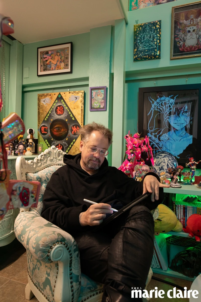 嚴格來說,儘管能以步行方式從「 Invasion Club 」抵達打卡景點「通天閣」,但工作室則是靠近鬧區中心邊緣,周邊沒有太多店家。推開精心設計過的鑄鐵大門,工作室分成兩層樓,一樓接待空間說是藝廊一點也不為過,各式各樣收藏公仔、日式傳統與潮流畫作,琳瑯滿目、目不暇給,就連廁所有別也洞天,實際展現了「 Invasion Club 」 特有的藝術品味。Benny 說:「這些畫作以及公仔很多都是朋友送的,或是工作室紋身師夥伴覺得有趣而擺設的,我的確希望『 Invasion Club 』就像是處不斷提供新奇點子的場所,讓來到這裡的人不斷有新的發現。」忍不住想問,整套《甄嬛傳》的 Q 版公仔是從何而來?「是臺灣朋友送的。」他笑著說。