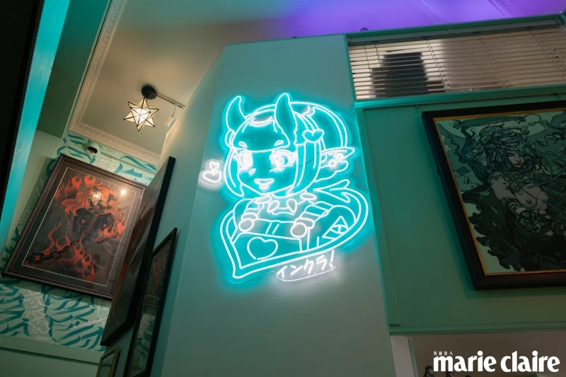 二樓的工作區更是別有洞天,三個位置分屬不同紋身師,黑色、白色以及粉紅色,不同佈置展現出鮮明個人特質,闡述著不同的創意氛圍。相對來說,紋身又好似一次療癒的旅程,大家帶著自己的故事來到「 Invasion Club 」,透過一筆一針留下的印記,早已超越了「追求流行」的範疇,Benny 說:「我同意紋身就像是一次的心理治療,無論你是因為什麼理由選擇紋身,把內在的故事顯化在外露的皮膚上,確實能夠達到滿足的治癒感。」