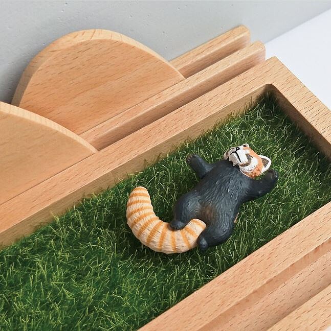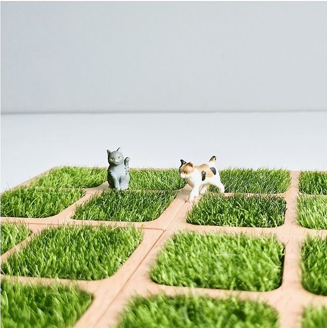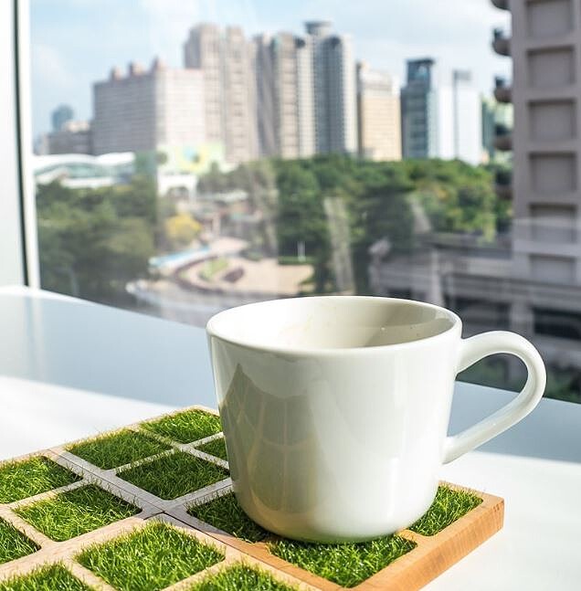 簡單樸實的線條,就像是田地一般井然有序,產品使用吸水纖維人造草皮,木頭也特別作了防水的處理,除了當杯墊也可當隔熱墊使用,也可以在草皮上擺設各式可愛公仔!
