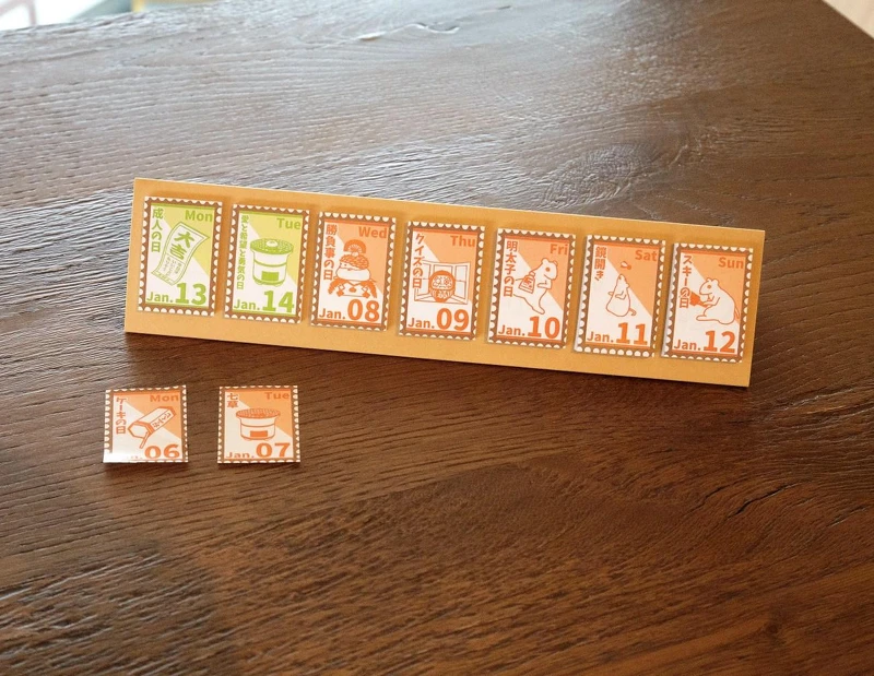 郵票也是許多人喜愛收藏的物品之一,Himekuri也推出了郵票款式!每週還會變換不同顏色,上面還印有各種有趣的小插圖,富有童趣款的小桌曆!