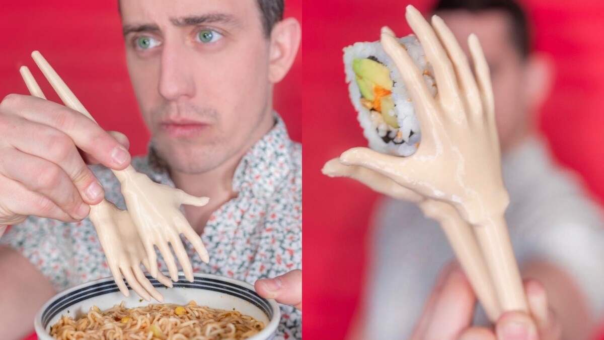 另外還有一項超適合外國朋友、不會用筷子的人,那就是「雙手筷」,在筷子尾端設計成有兩隻大大的手,如此一來就不用怕會夾不到眼前的食物,圓滾滾或太軟爛的東西,全都難逃這雙手,同樣的讓吃飯更快速又方便許多。