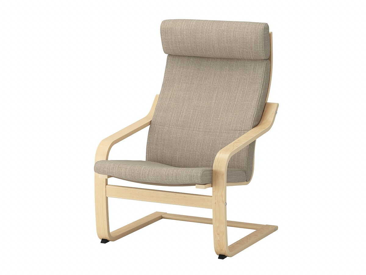 「POANG系列扶手椅」有彎曲成型的樺木椅框、高椅背設計,不只視覺舒適優雅,還能提供絕佳的舒適感,下班回家就好好坐著休息吧。