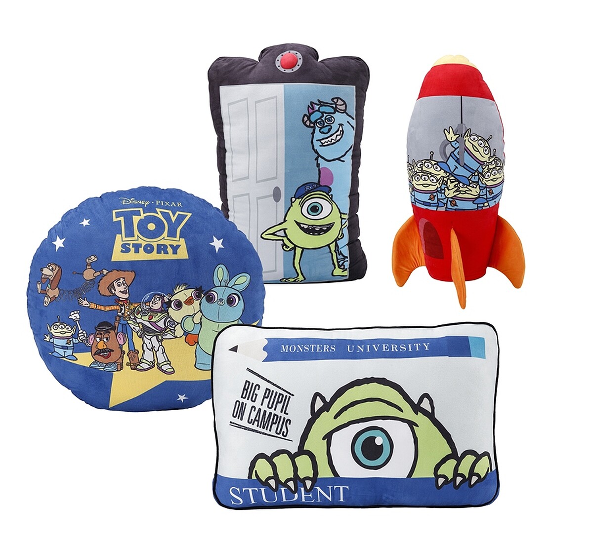 Monsters造型抱枕-傳送門/驚嚇罐,售價899元;Monsters造型抱枕-毛怪/大眼仔,售價699元;Toy Story造型抱枕-星球/火箭,售價699元