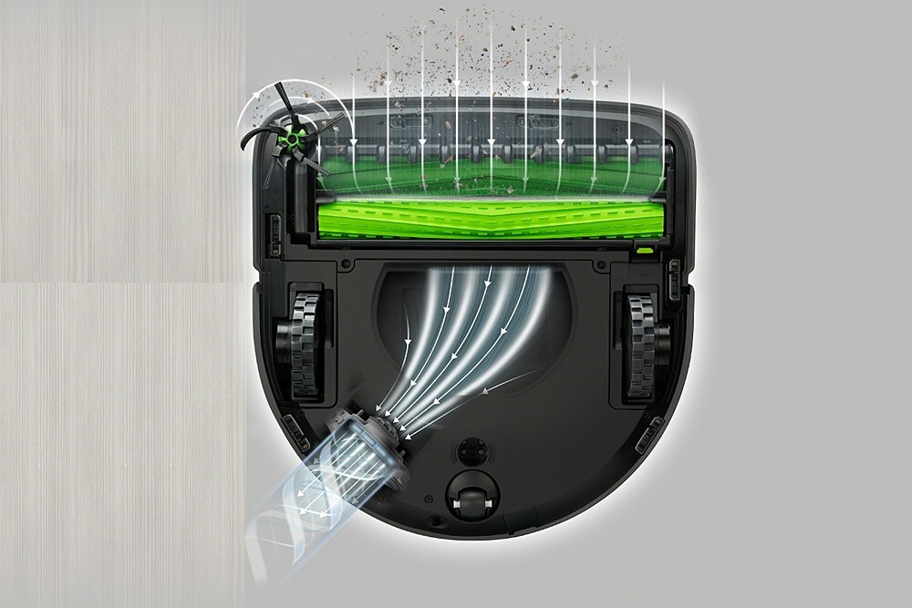 只有吸力還不夠,有些藏在隙縫中的髒東西,可要靠刷子幫忙才能清掃。搭載專利「PerfectEdgeTM完美邊角清掃技術」,並運用加長的專屬五角刷,可以更深入邊角、貼合地板。也採用加長30%的第三代滾輪雙膠刷,可以透過「一刮一斬」方式刮起地面汙垢,徹底解決髒汙。