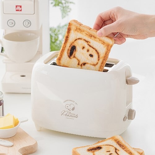 重點是這台吐司機完全不用怕手殘烤不好,只要將吐司放入吐司機中,就會直接考出完美的snoopy造型!